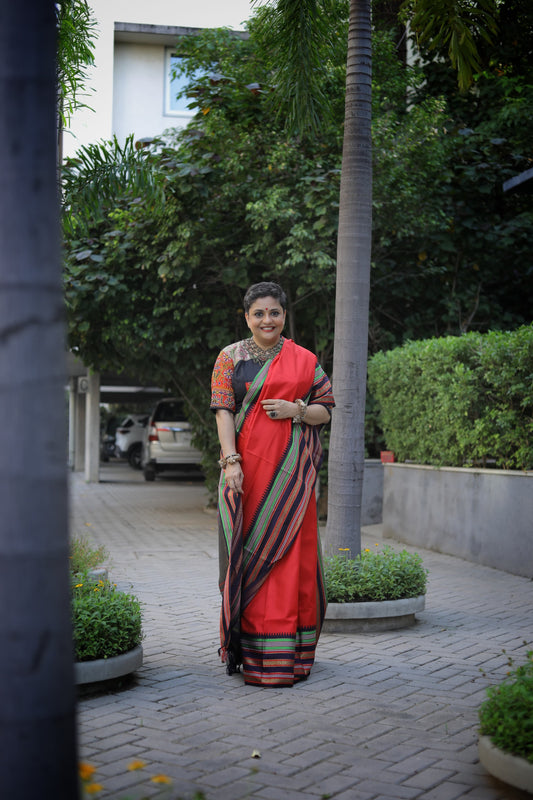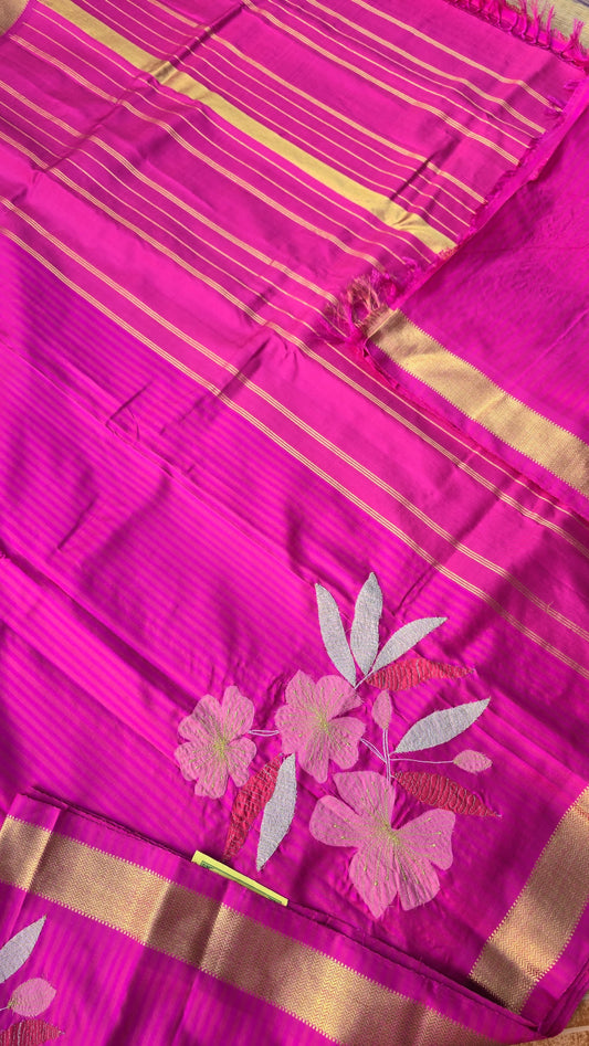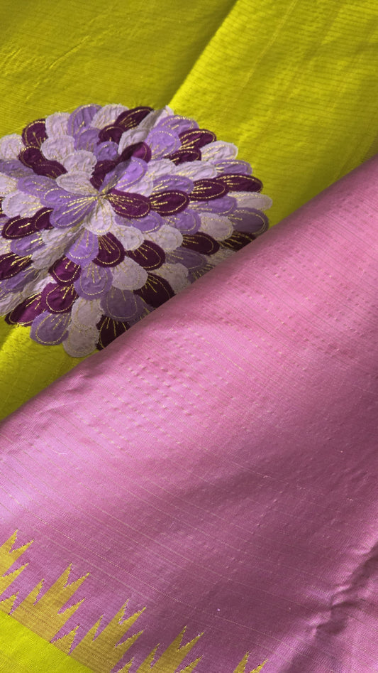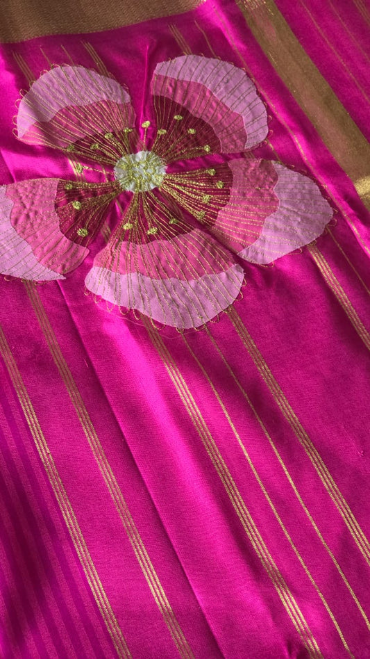 Air India Border Kanjivaram Silk Saree with Pearl & Gota Patti Work