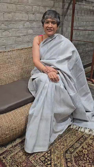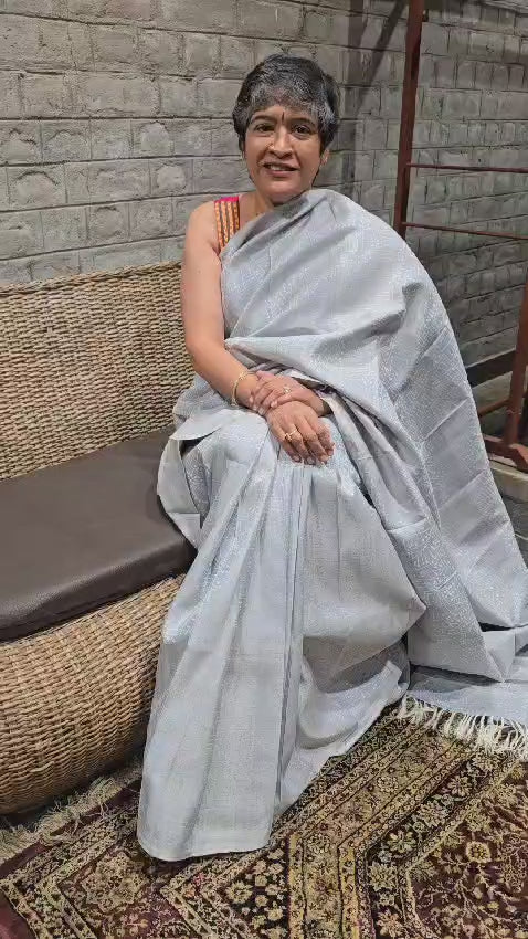 Stunning light brownish grey self design inspired from an antique vase! The design is is abstract bird motif from 1950's.