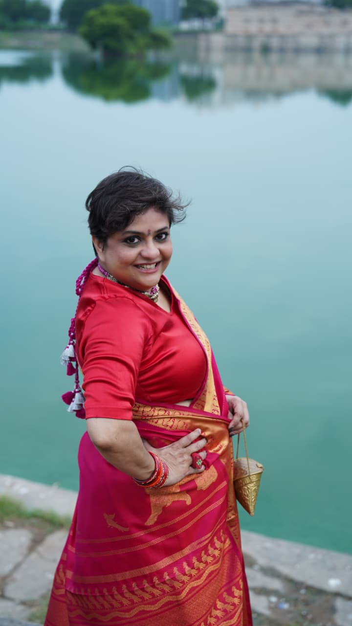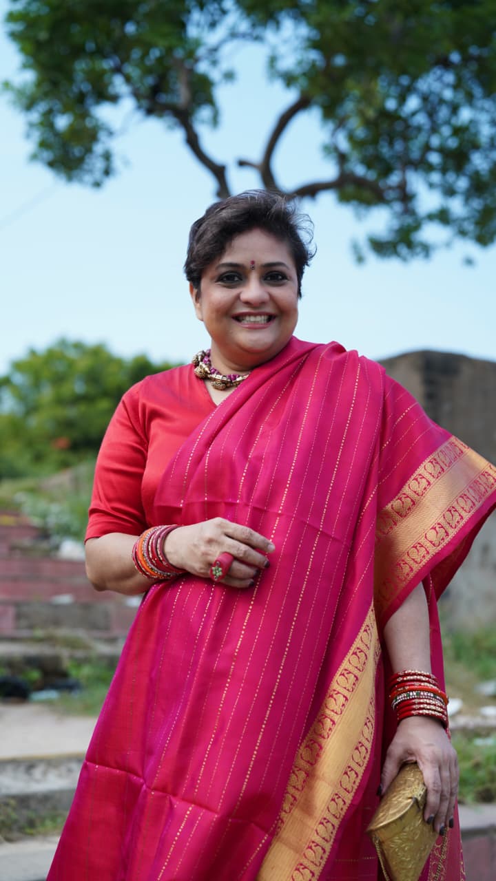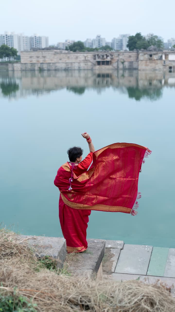 The Nachiyar saree is a handwoven tribute to Andal, also known as Nachiyar or Godhai, whose devotion and verses in the Tiruppavai and Nachiyar Tirumoli continue to resonate during the sacred month of Margazhi.