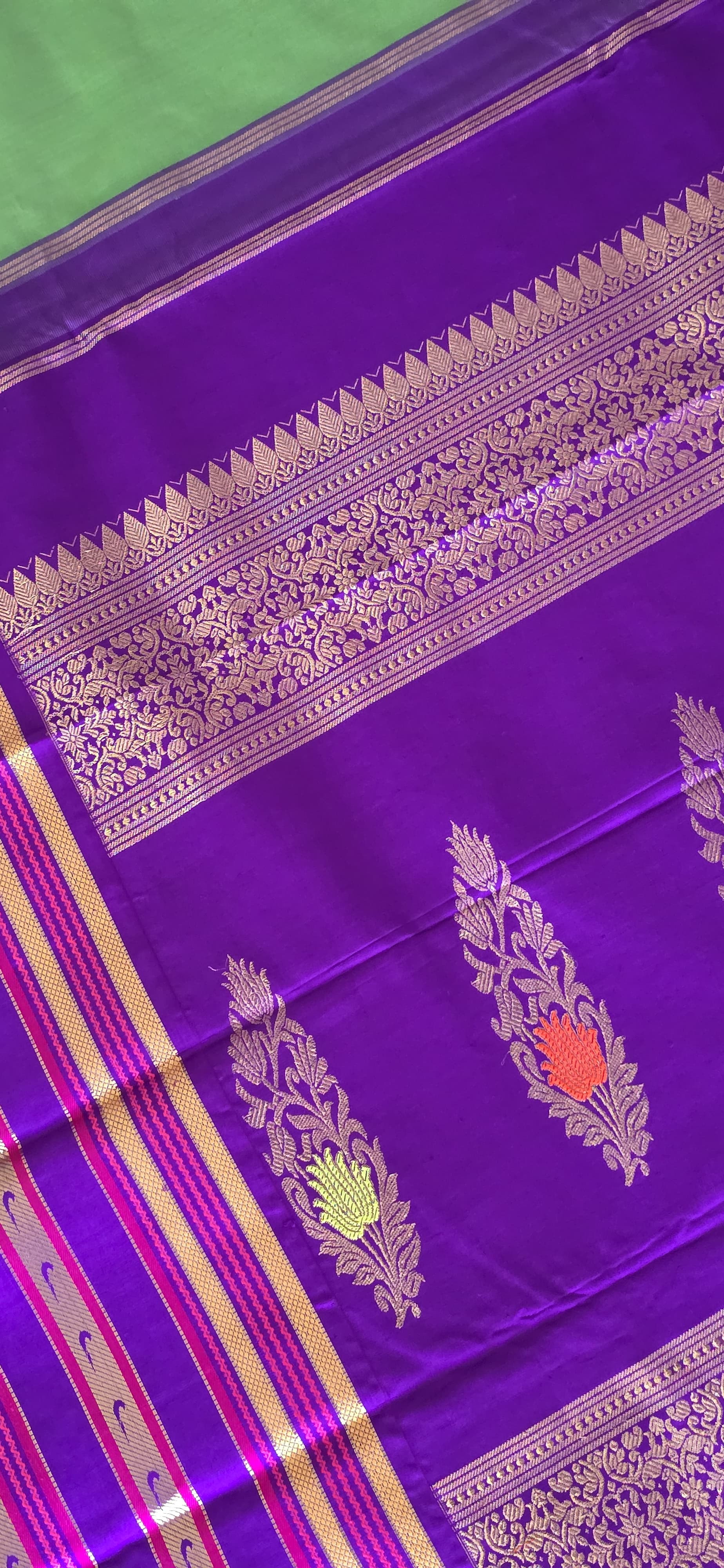 Yarn: Pure kora silk, Double twisted pure Silk, handwoven sari, pure zari