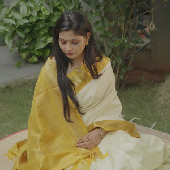 Introducing the first masterpiece of our Festive Collection ’25: a Venpattu replica in natural silk, framed by a mustard Korvai border inspired by the Kodalikarpur hanging at the Delhi National Museum.